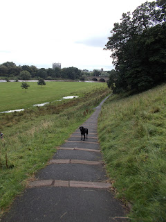 I defiantly should have worn thicker socks as my boots, by the time we approached the outskirts of Carlisie I'd got a couple of blisters where the tops of the boots rubbed. Some plasters and painkiller made do though. It's just as well I didn't wear the boots again until the final day. So yeah, bring thick socks, and blister stickers! We came into Carlsie gradually by the river, all woodland up into a park near the city centre. But it ended up taking some trespassing to get there. My feet hurt a fair bit by now and wasn't remotely keep to take yet another path diversion signposted. So we took the risk and headed by the original path route to see how it went. It went ok, we passed around what we assumed was the case of the diversion which was a fence of section of path that had eroded towards the rivers edge.
